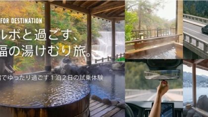 ボルボと過ごす、至福の湯けむり旅 北欧デザインの洗練と、日本の温泉文化が織りなす、特別な体験。静寂に包まれたボルボの車内で、心ゆくまで移りゆく景色を堪能し、その先の湯けむりの街で、深い癒しと解放を。 上質な乗り心地が至福の時間に変える、贅...