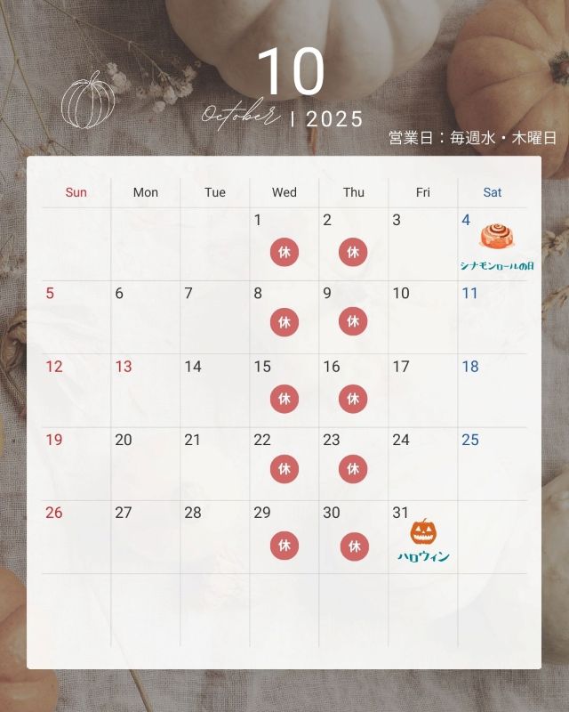 【 10 月 定 休 日 の お 知 ら せ 】