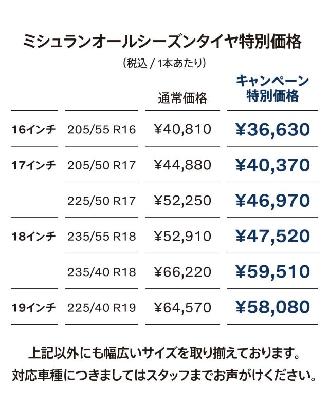 【 ミシュラン オールシーズンタイヤ 特別価格 】