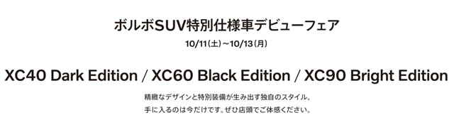 【10/11(土)~10/13(月)】ボルボSUV特別仕様車デビューフェア