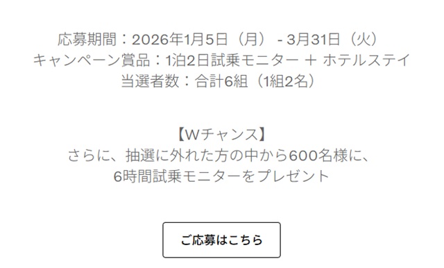 【 一泊二日の試乗体験 】